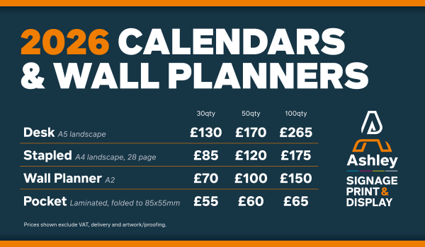 Prices shown exclude VAT. Artwork, proofing and delivery are also excluded, but are all available at additional cost. Prices valid until 23rd December 2025. For full terms and conditions visit https://www.ashleyads.co.uk/terms-and-conditions-of-supply/